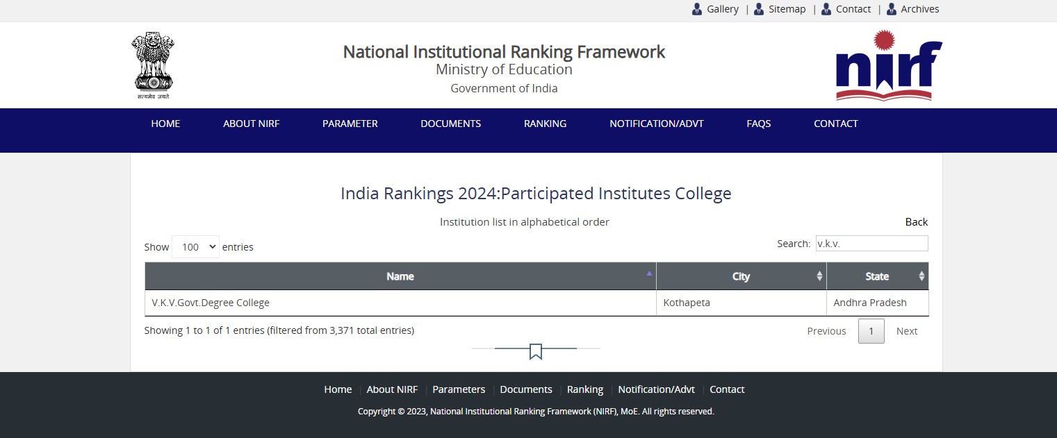 Click here For NIRF Participation 2024 for the A.Year 2023-24